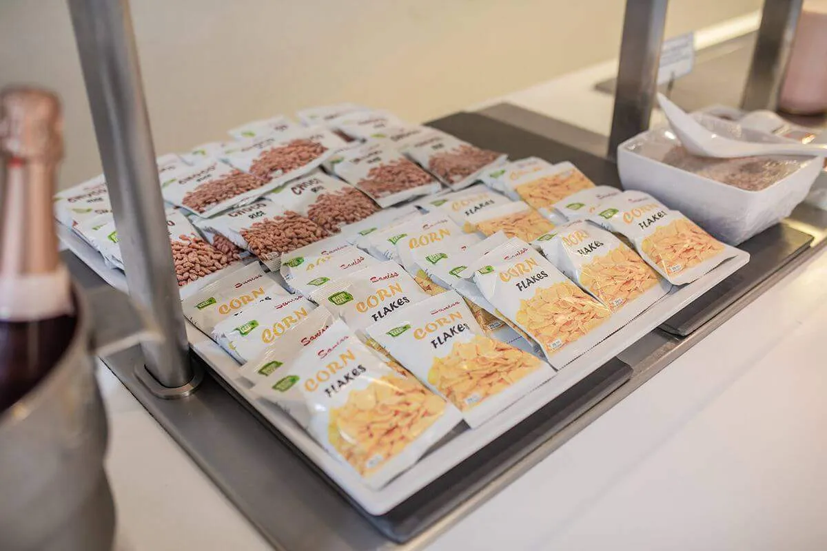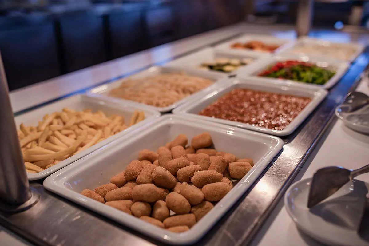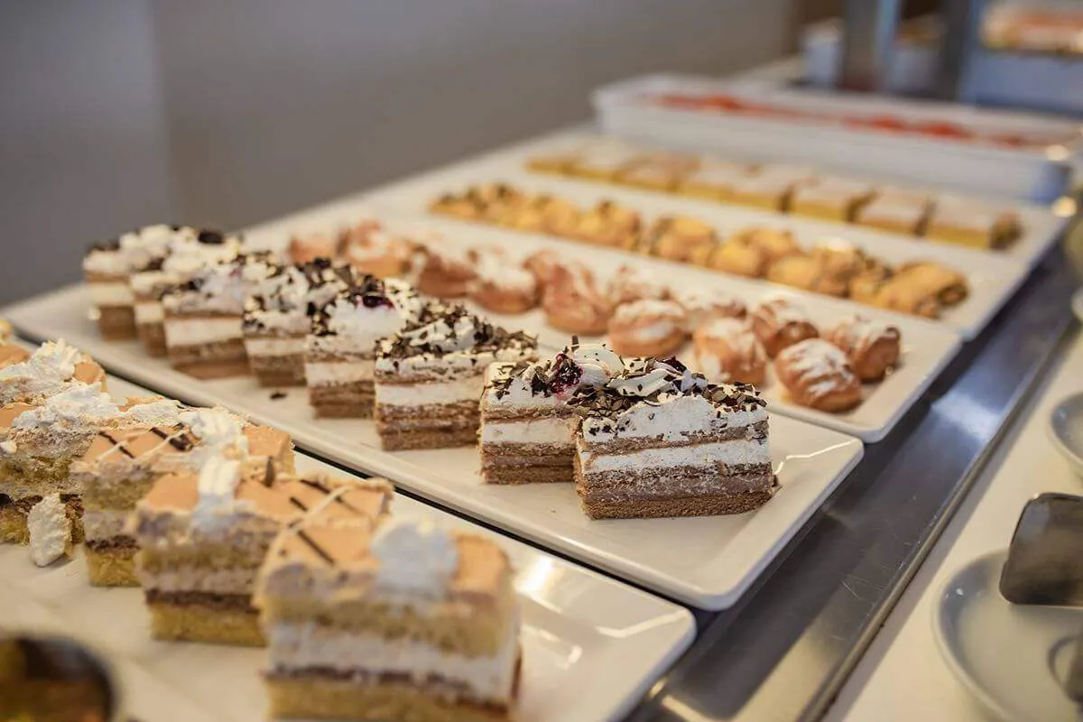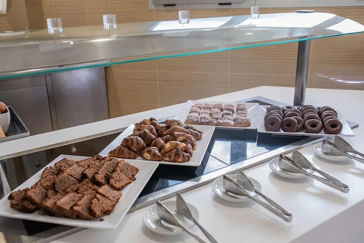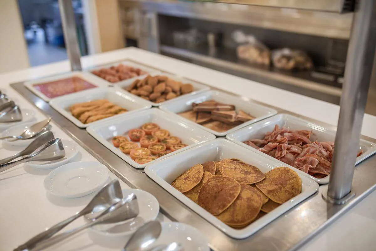 På frokostbuffeen finner du alternativer for enhver smak; varme retter, utvalg av pølser, oster, kremost, frokostblandinger, havregryn, utvalgte bakerivarer, sesongens frukt, salatelementer, kaker, bakverk, meieriprodukter, yoghurt, kaffe, juice og te.