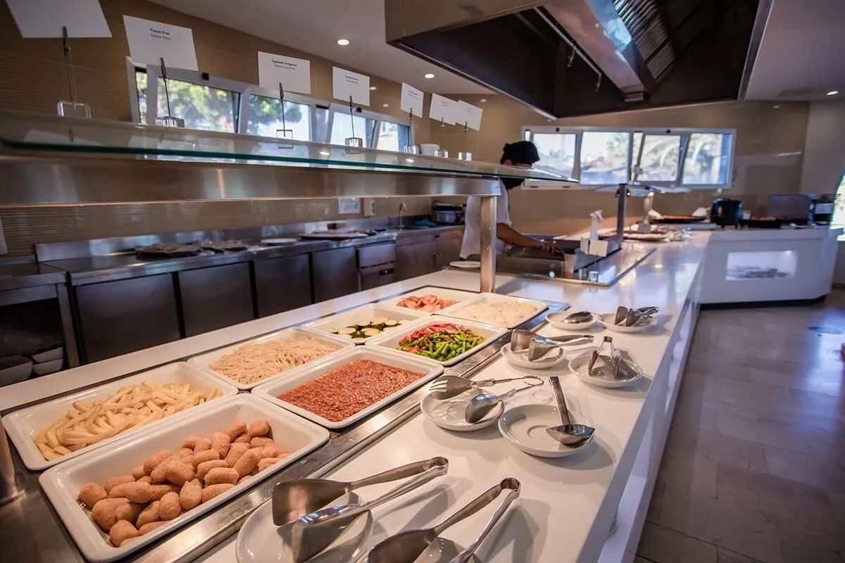 Vår koselige restaurant tilbyr en frokostbuffé med et stort utvalg. Den har to soner; en innendørs og en utendørs med utsikt over bassenget.