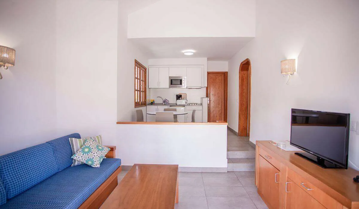 Den klassiske bungalowen med ett soverom ved bassengsiden, spredt over et areal på 42.50m2, har alle bekvemmeligheter for å nyte en fantastisk ferie. Lys, komfortabel og romslig, vil du finne et soverom med to enkeltsenger sammen, et fullt utstyrt kjøkken hvor du kan lage mat komfortabelt hvis du ønsker det, et romslig bad med dusj eller badekar, en koselig stue med sovesofa, TV, telefon, gratis WIFI, aircondition og en møblert terrasse hvor du kan nyte det fine været ved siden av bassenget.